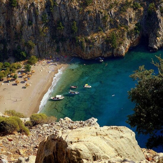 Одна из природных красот Турции, а также Фетхие, Kelebekler Vadisi, Он окружен крутыми скалами высотой 350 метров.